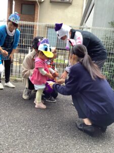 ノードワークスの利用者さんも園児さんを驚かせない程度に仮装し、お菓子をプレゼントしました。